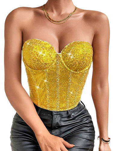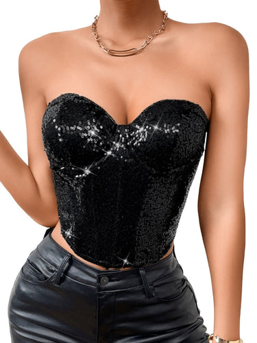 Kaei&Shi Sparkly Sequin Tops, Glitter Corset Outfits, Sexy Sweetheart Neck![]()  - Regular price