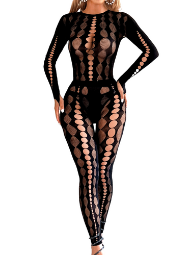 Kaei&Shi Strappy Lingerie, Underwire, Collar, Full Body Fishnet & Bodysuit, 2Pcs
