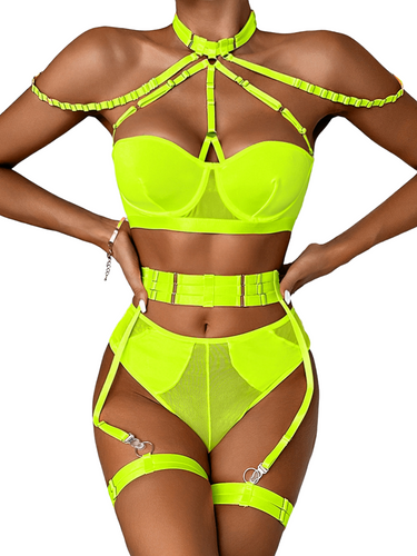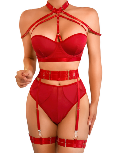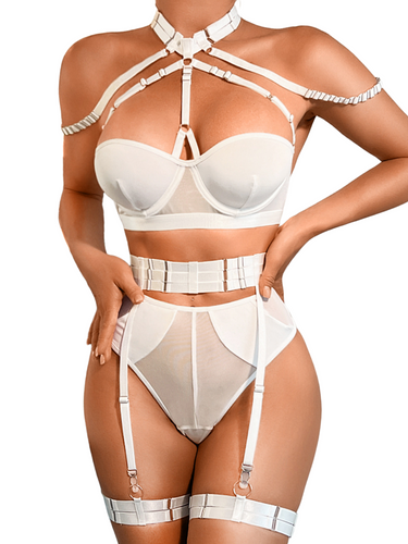 Kaei&Shi Criss Cross, Exotic Strappy, Thong Leg straps, 4 PC Garter Lingerie Set