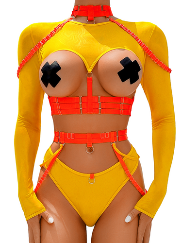 Kaei&Shi Rave Outfit, Adjustable Strappy, Contrast Color, Choker, Chain Belt